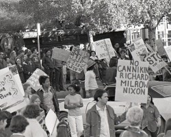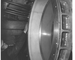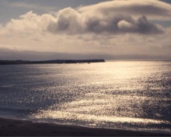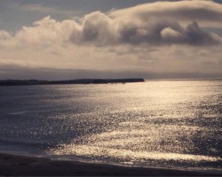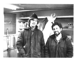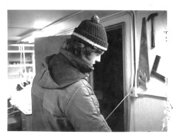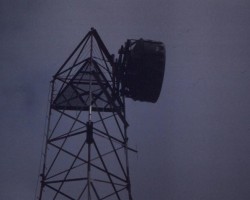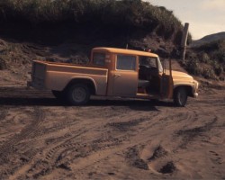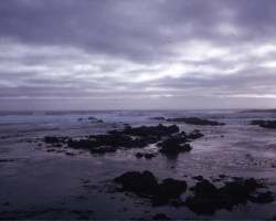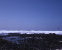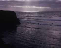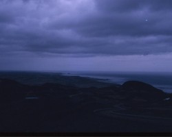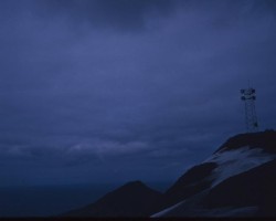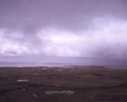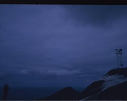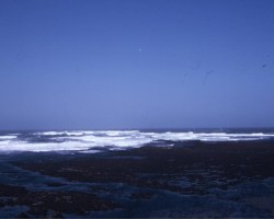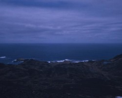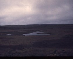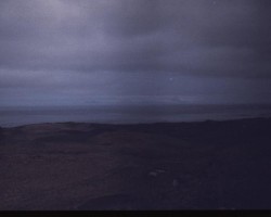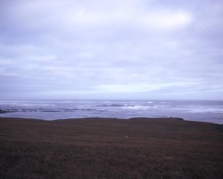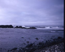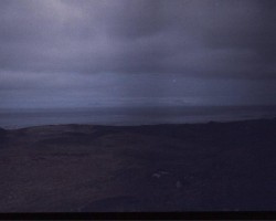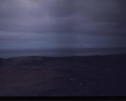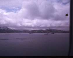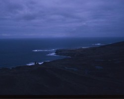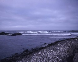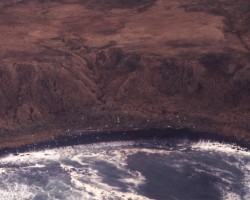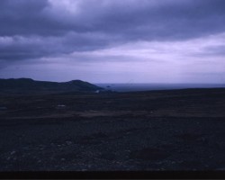 Rockfalls along the Bering Sea coastline caused by the Cannikin detonation. Photo taken on D + 1 day.