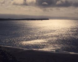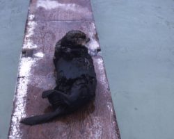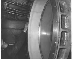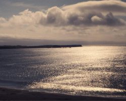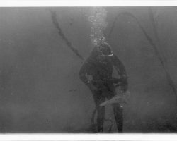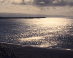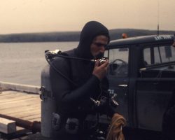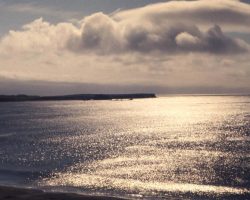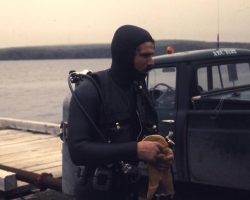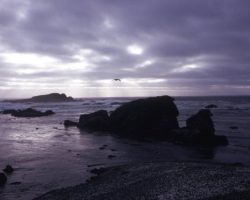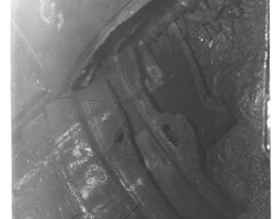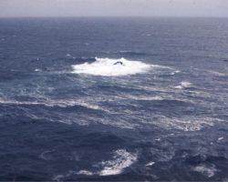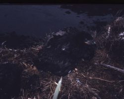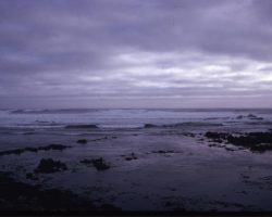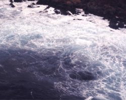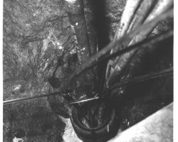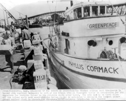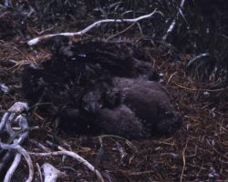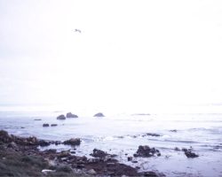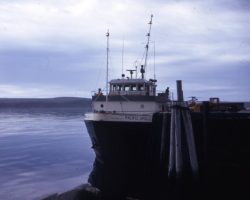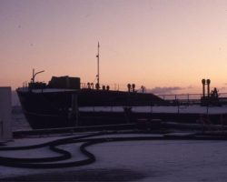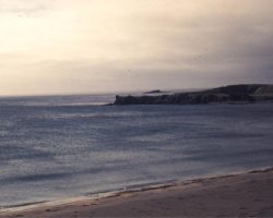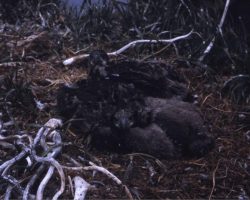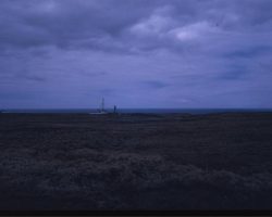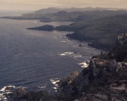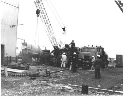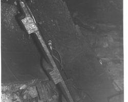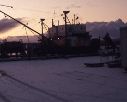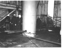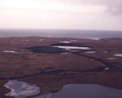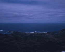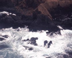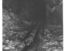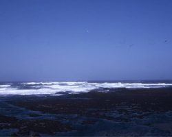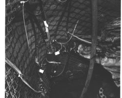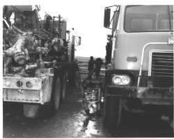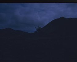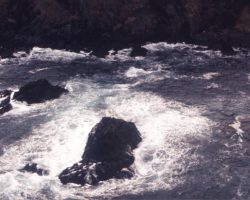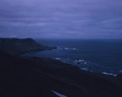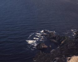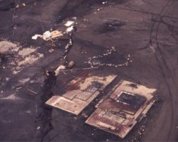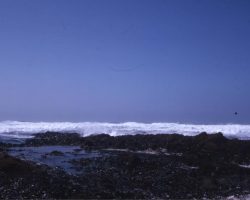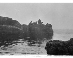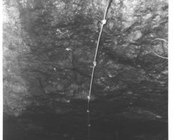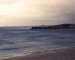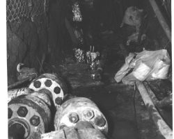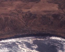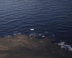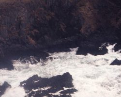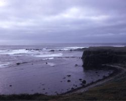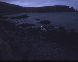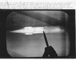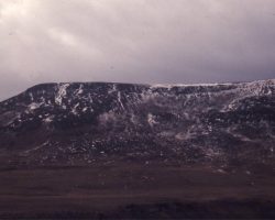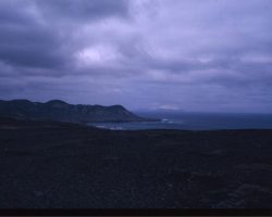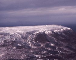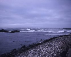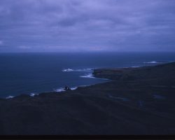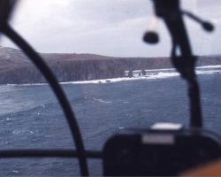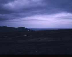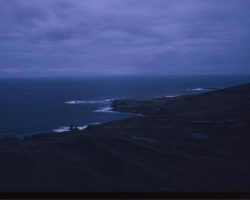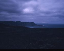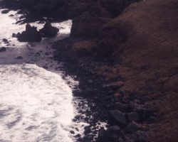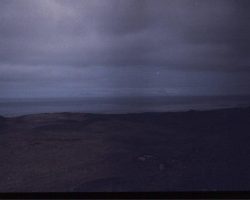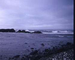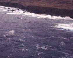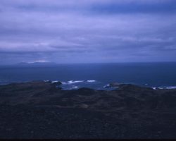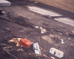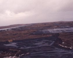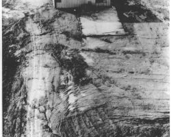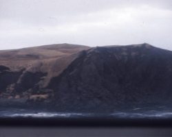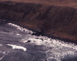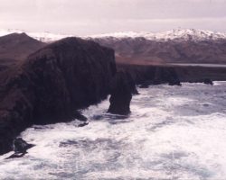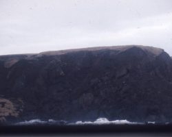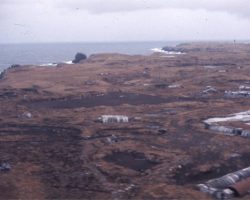 Rockfalls along the Bering Sea coastline caused by the Cannikin detonation. Photo taken on D + 1 day.